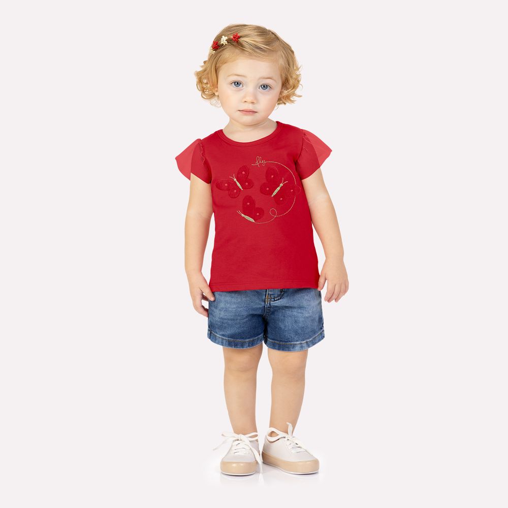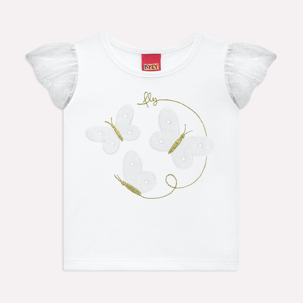 Delicada e cheia de brilho, a blusa infantil menina Kyly é puro encanto! Confeccionada em meia malha 100% algodão no corpo e mangas em chiffon 100% poliéster, a peça combina conforto e leveza em um design sofisticado e encantador, perfeita para celebrações.