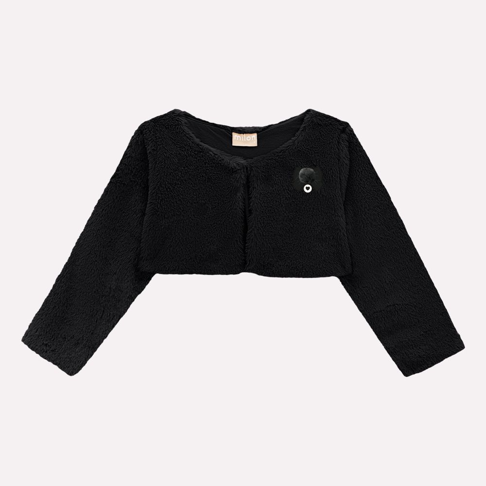 O bolero infantil menina Milon é a escolha perfeita para adicionar um toque de charme e aconchego aos looks das pequenas. Com design encantador e acabamento primoroso, a peça é confeccionada em pelo liso de toque extremamente macio corpo 100% poliéster, proporcionando sensação de conforto e aquecimento suave, ideal para os dias mais fresquinhos. O forro 100% algodão garante maior respirabilidade e bem-estar ao contato com a pele delicada das crianças. O toque final fica por conta da aplicação de um laço delicado.