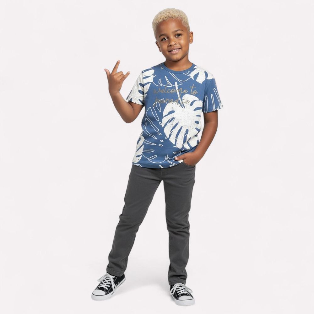 A camiseta infantil menino Kyly é feita em meia malha 100% algodão, garantindo conforto, frescor e maciez. Sua modelagem tradicional conta com mangas curtas e decote redondo reforçado.