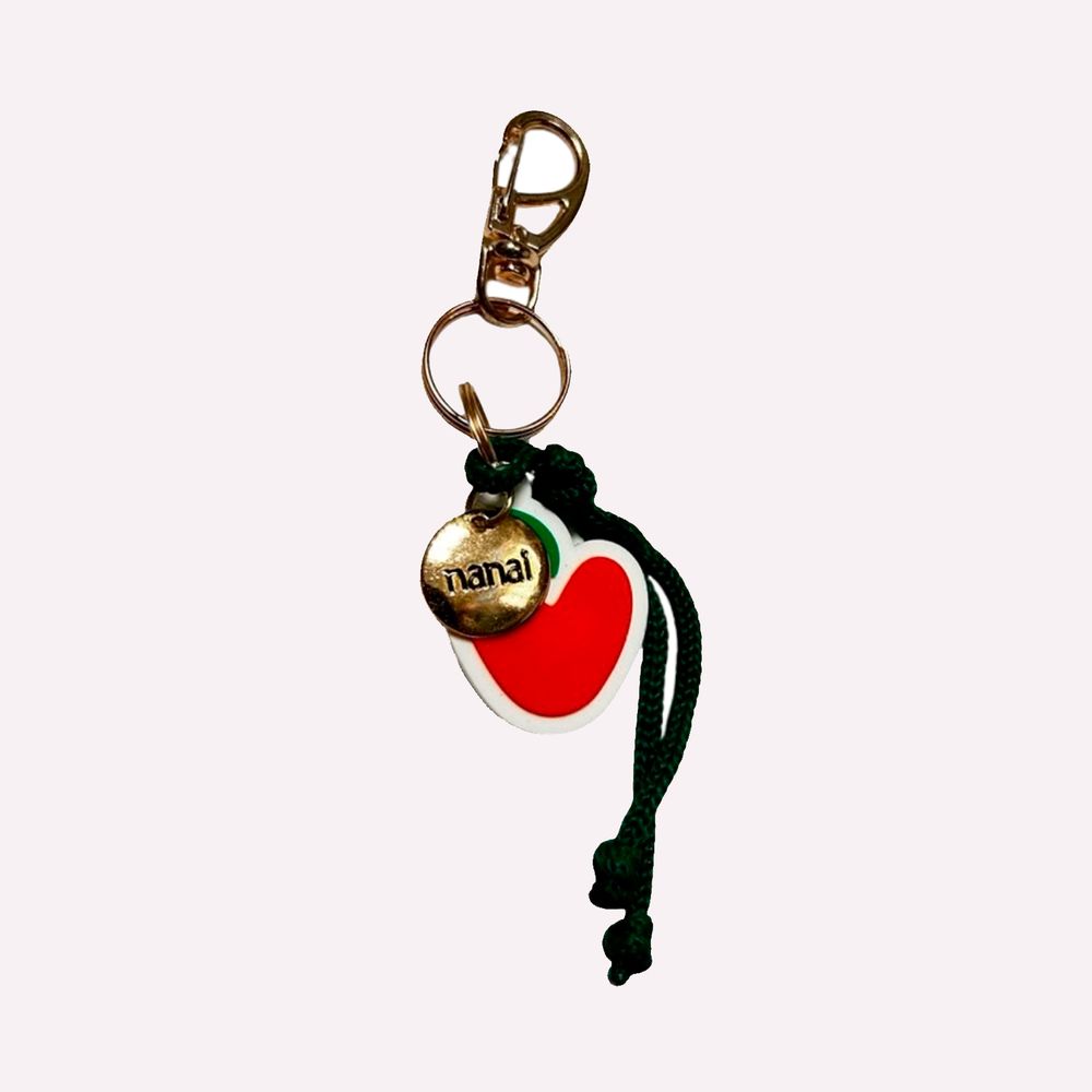 Com pingente da marca Nanai, o acessório apresenta acabamento emborrachado, com cores vibrantes em vermelho e verde que remetem à leveza e ao frescor das estações mais alegres do ano.