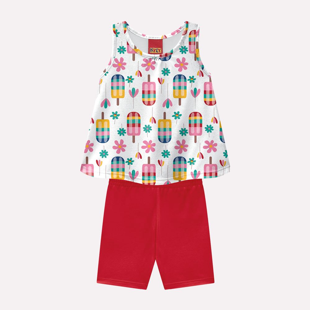 Um look cheio de alegria, cor e conforto para os dias mais divertidos! O conjunto infantil menina Kyly é confeccionado com todo o cuidado para garantir liberdade e bem-estar às pequenas. A regata em meia malha 100% algodão é leve, macia e confortável, perfeita para os dias quentes. Já o short ciclista em cotton 95% algodão e 5% elastano oferece elasticidade e ajuste ideal ao corpo, permitindo movimentos livres durante as brincadeiras.