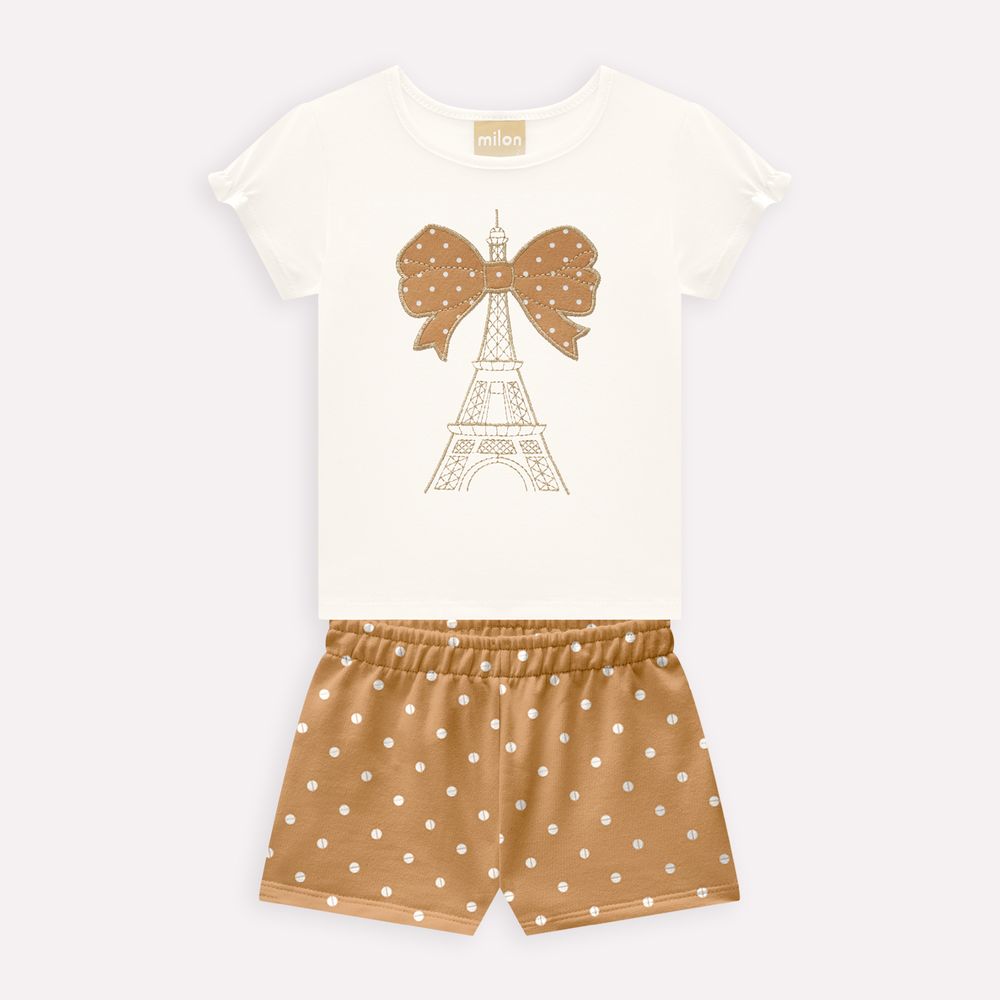 O conjunto infantil menina Milon combina conforto, estilo e um toque de romantismo inspirado na beleza de Paris. A blusa é confeccionada em cotton 95% algodão e 5% elastano, proporcionando um caimento ajustado e extremamente confortável. Sua modelagem reta e delicada é valorizada por um bordado encantador que traz a icônica Torre Eiffel adornada por um laço de poá em destaque. As mangas com leve franzido e acabamento delicado completam o visual com feminilidade e charme.