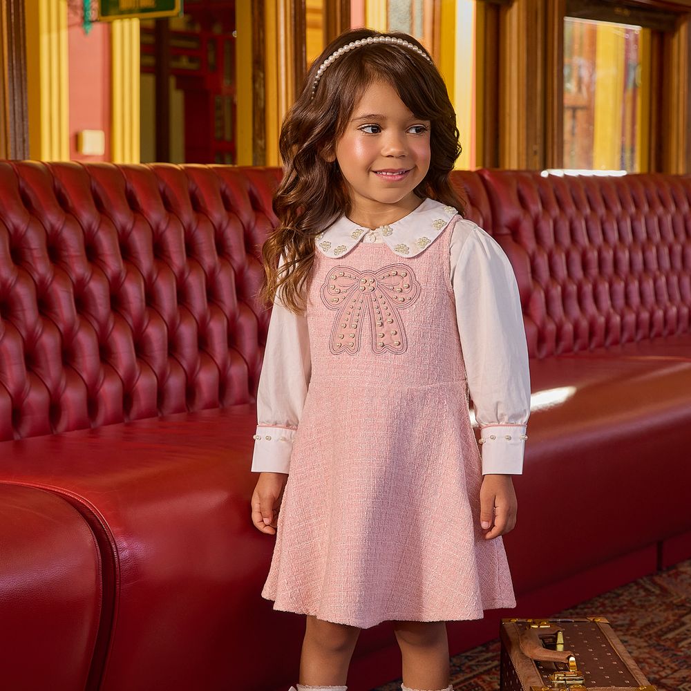Um look delicado que traduz a elegância da moda infantil com um toque clássico e encantador. O conjunto infantil menina Milon combina a sofisticação do vestido em tweed com a leveza da camisa em tricoline, criando uma composição refinada perfeita para ocasiões especiais.