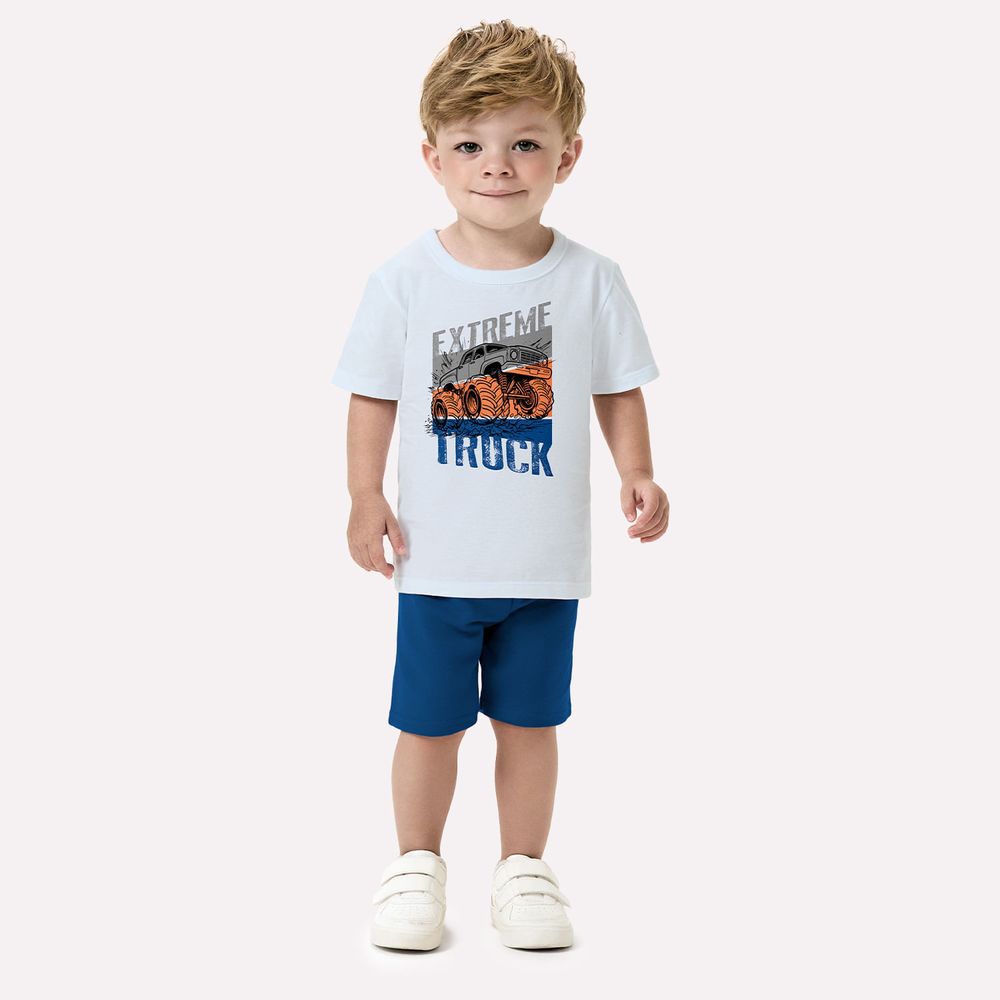 A bermuda, confeccionada em moletom sem felpa 100% algodão, tem caimento leve e modelagem ampla, com cós elástico para vestir com autonomia e segurança. Os tons são coordenados com as camisetas, compondo visuais harmônicos e atuais. Ideal para brincadeiras ao ar livre, passeios ou para dias relaxados em casa. Um conjunto prático e estiloso, perfeito para quem valoriza conforto e estilo no dia a dia dos meninos.