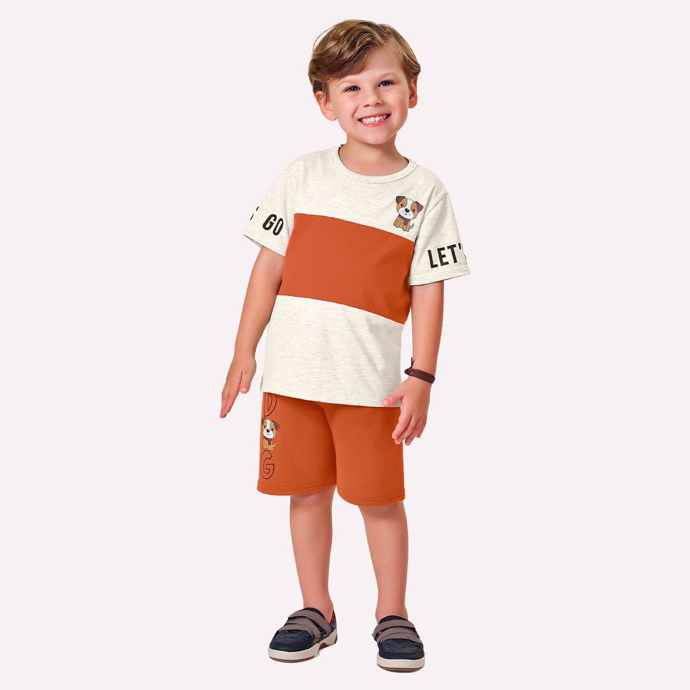 O conjunto infantil menino Kyly é perfeito para vestir os pequenos com conforto, delicadeza e um visual moderno na medida certa. A camiseta é confeccionada em meia malha 100% algodão, garantindo toque macio, respirabilidade e conforto ao longo do dia. Sua modelagem clássica oferece caimento confortável ao corpo, respeitando os movimentos naturais da criança. O design traz estampa de cachorrinho combinada com lettering aplicado de forma equilibrada, criando um visual lúdico e sofisticado, com detalhes que valorizam a peça sem excessos.