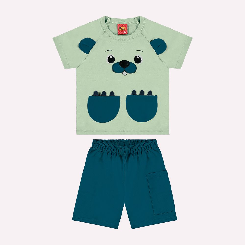 O conjunto infantil menino Kyly é perfeito para vestir os pequenos com conforto, suavidade e um visual encantador, pensado nos mínimos detalhes. A camiseta é confeccionada em meia malha 100% algodão, oferecendo toque macio, excelente respirabilidade e conforto para o uso diário. Sua modelagem clássica proporciona caimento confortável ao corpo, respeitando os movimentos naturais da criança. O destaque fica por conta do bordado de castor, aplicado com delicadeza, além dos bolsos frontais que acrescentam charme e um toque lúdico à peça, mantendo um visual limpo e sofisticado.