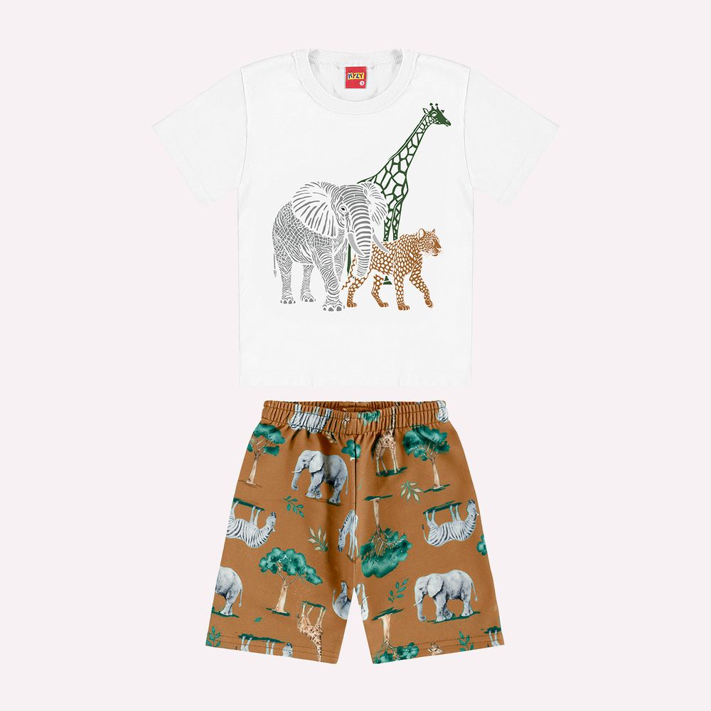 O conjunto infantil menino Kyly une conforto, leveza e um visual encantador inspirado no universo da selva.