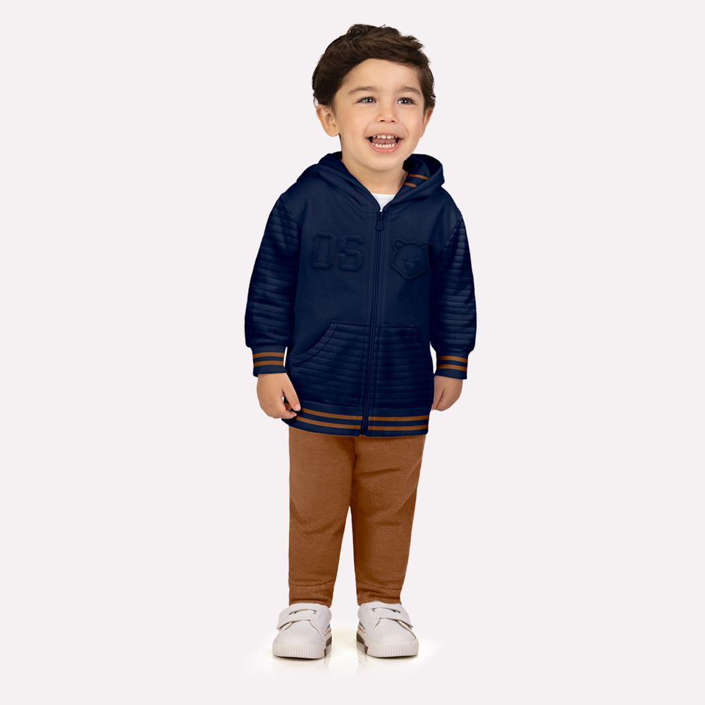 Conforto e estilo se encontram neste conjunto infantil menino Milon, perfeito para acompanhar os pequenos nos dias mais fresquinhos com um visual moderno e cheio de personalidade.
