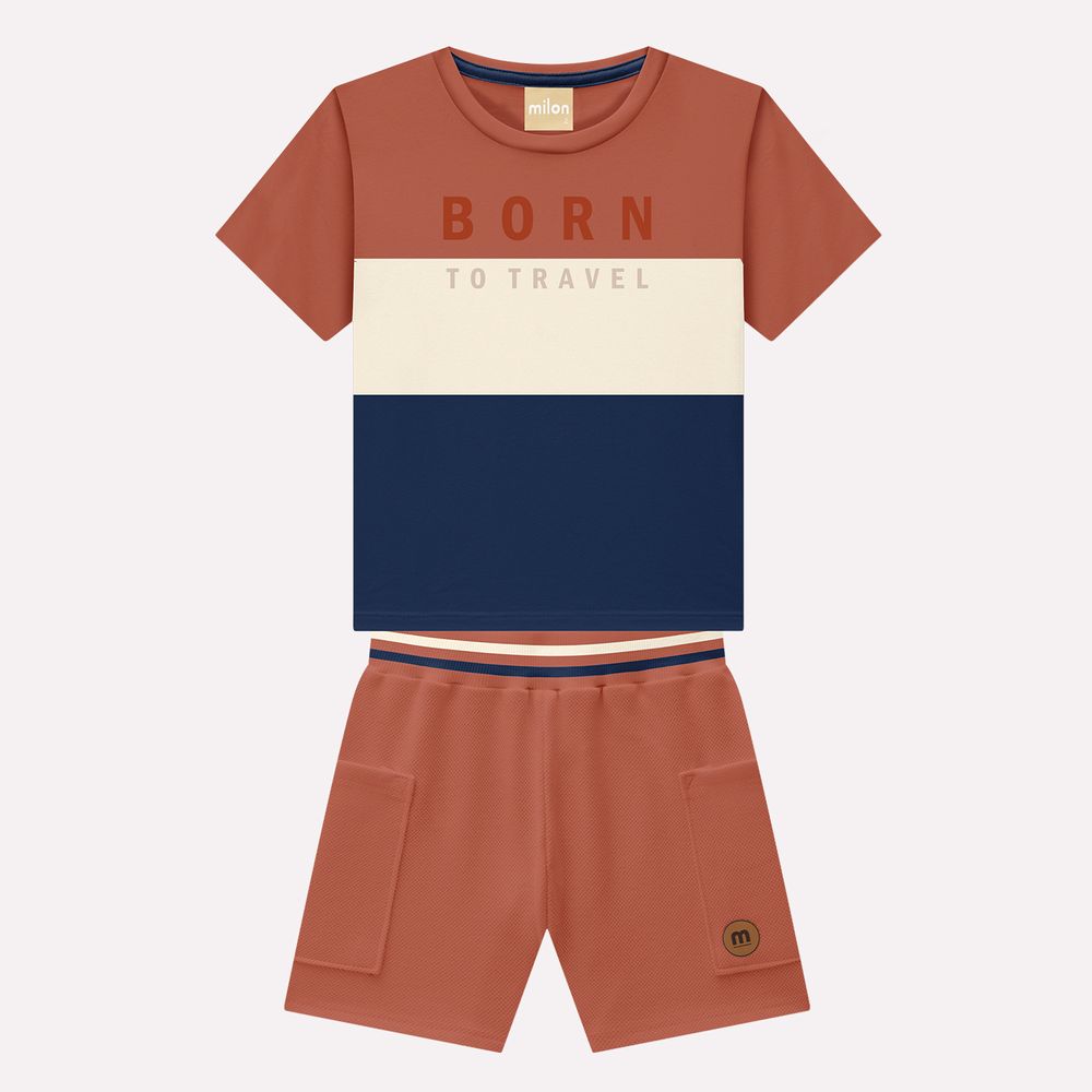 A parte superior é composta por camiseta em meia malha 100% algodão, oferecendo toque macio, respirabilidade e excelente conforto térmico. A modelagem é confortável, com mangas curtas e gola redonda, proporcionando ótimo caimento. A estampa localizada com lettering adiciona um visual contemporâneo e discreto, valorizando a peça com sutileza e equilíbrio.