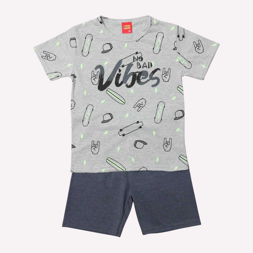 O conjunto infantil menino Kyly conta com camiseta confeccionada em meia malha 100% algodão, garantindo suavidade ao toque e respirabilidade. Seu diferencial está na estampa localizada, com lettering criativo e grafismos modernos, que deixam a peça cheia de estilo e perfeita para meninos que adoram ousar no visual.