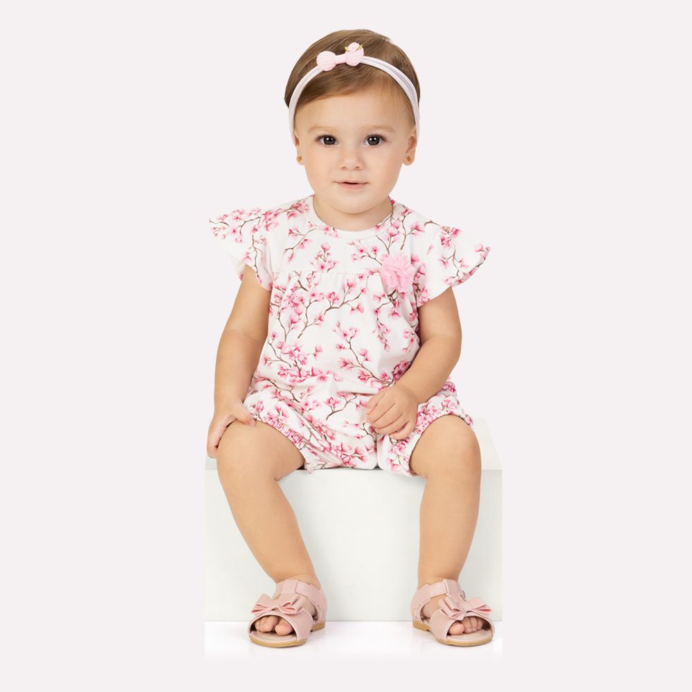 O destaque fica por conta da estampa floral em tons suaves de rosa, que traz frescor e feminilidade à peça. As manguinhas com babadinhos e o detalhe de flor aplicada no peitinho acrescentam um toque artesanal e sofisticado, enquanto o fechamento prático entrepernas com botões de pressão facilita na hora de vestir e trocar. Um look encantador que une conforto, estilo e o charme atemporal das flores — perfeito para deixar sua pequena ainda mais linda e elegante em qualquer ocasião!