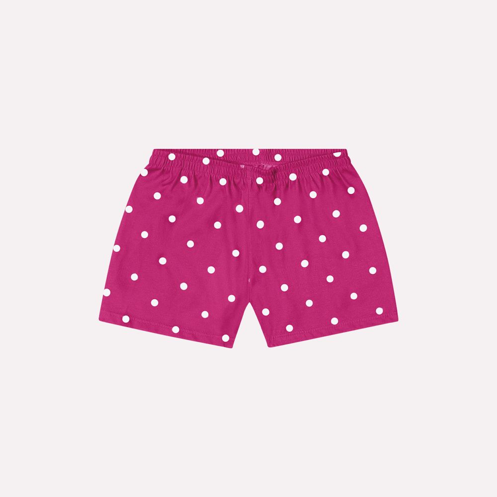 O modelo apresenta estampa rotativa de poá, um clássico que traz charme e delicadeza ao visual. A cintura com elástico rebatido oferece ajuste seguro e confortável, sem apertar, enquanto a ausência de costura lateral evita incômodos na pele. A barra com bainha reforçada proporciona durabilidade e ótimo acabamento, ideal para acompanhar a rotina das pequenas com estilo e conforto.