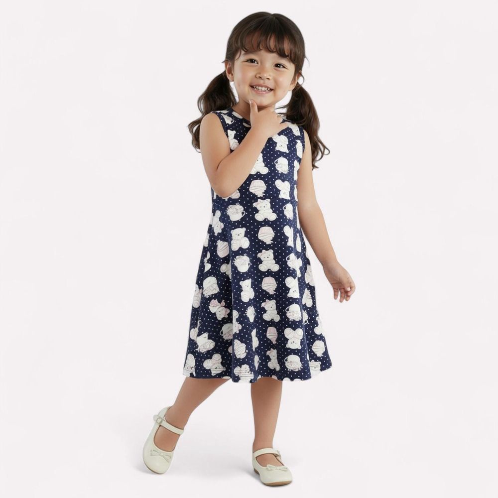 O vestido infantil menina Kyly confeccionado em cotton composto por 95% algodão e 5% elastano, traz modelagem superior regata e caimento evasê soltinho que garante conforto e liberdade.