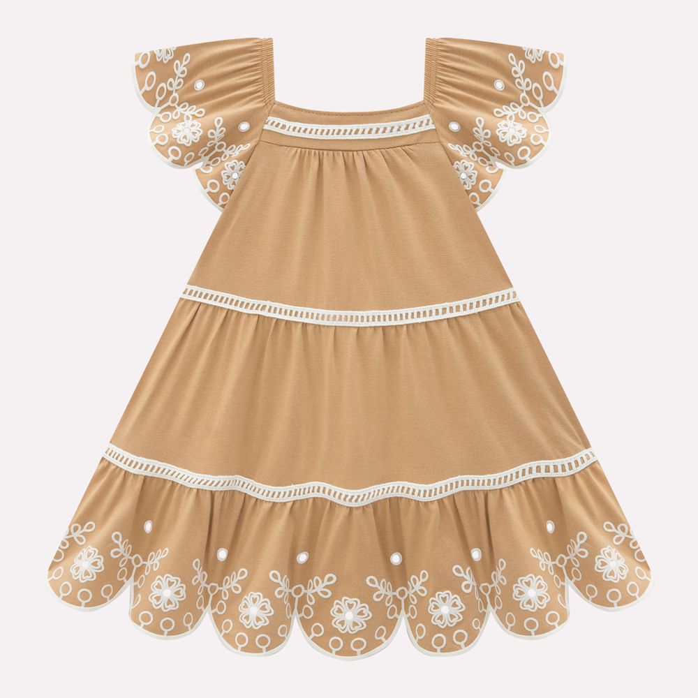 Delicado, divertido e com uma elegância clássica, o vestido infantil menina Milon é confeccionado em meia malha 100% algodão, combina suavidade ao toque com respirabilidade e conforto, sendo perfeito para os dias mais quentes da estação. Com caimento fluido e modelagem soltinha, a peça foi pensada para proporcionar liberdade de movimento com muito charme. A silhueta apresenta um design moderno com recortes estrategicamente franzidos que conferem volume delicado à saia, com os detalhes em aviamento. O diferencial da peça está nas mangas com babadinhos e na barra, ambos com estampa de flores e folhas com acabamento em corte a laser, que garantem sofisticação e um acabamento rico em detalhes.