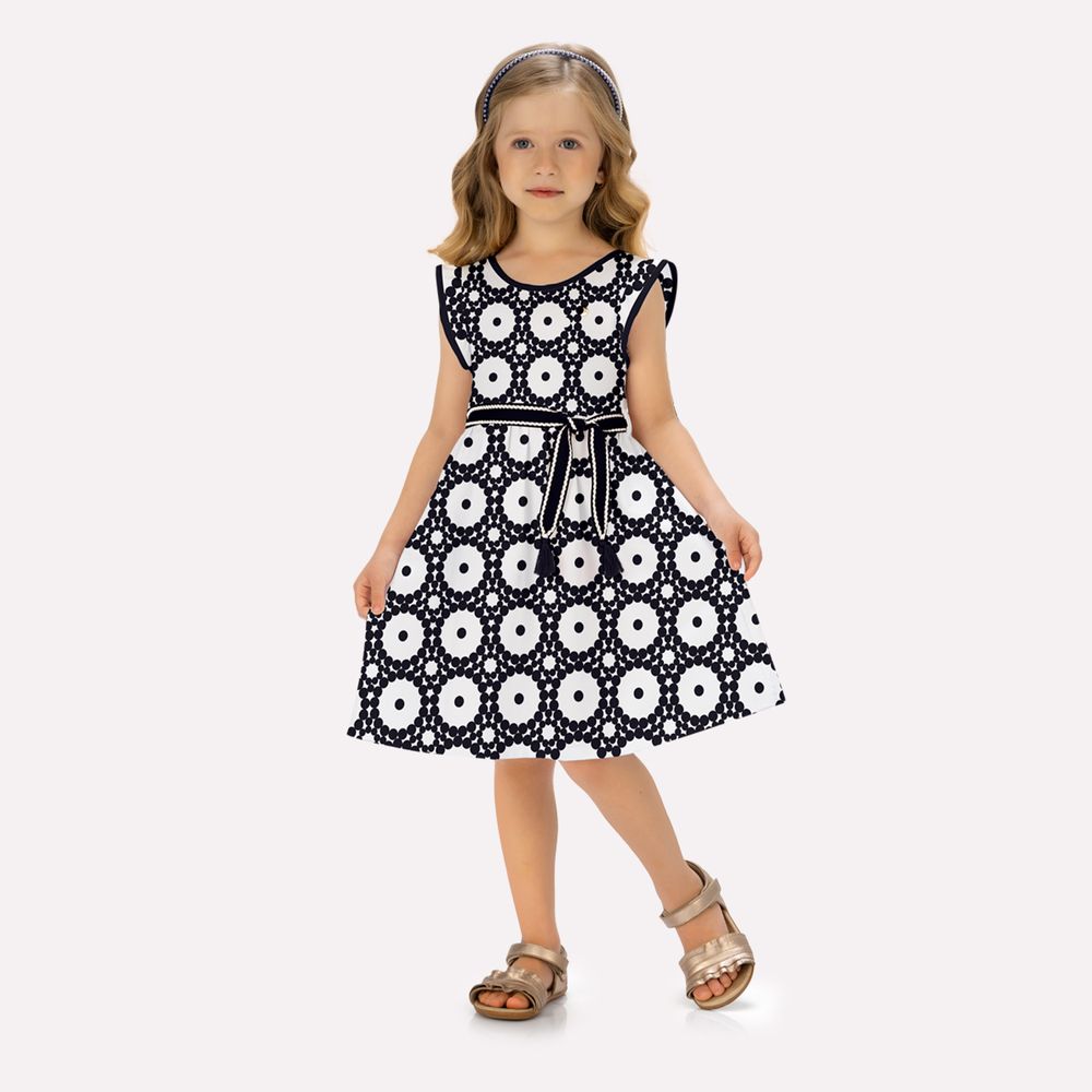 Confeccionado em cotton 95% algodão e 5% elastano, o tecido possui toque macio, elasticidade ideal e caimento leve, proporcionando liberdade de movimento e conforto durante todo o dia. Sua modelagem evasê com cintura franzida traz um visual fluido e gracioso, valorizando a silhueta infantil de forma delicada.