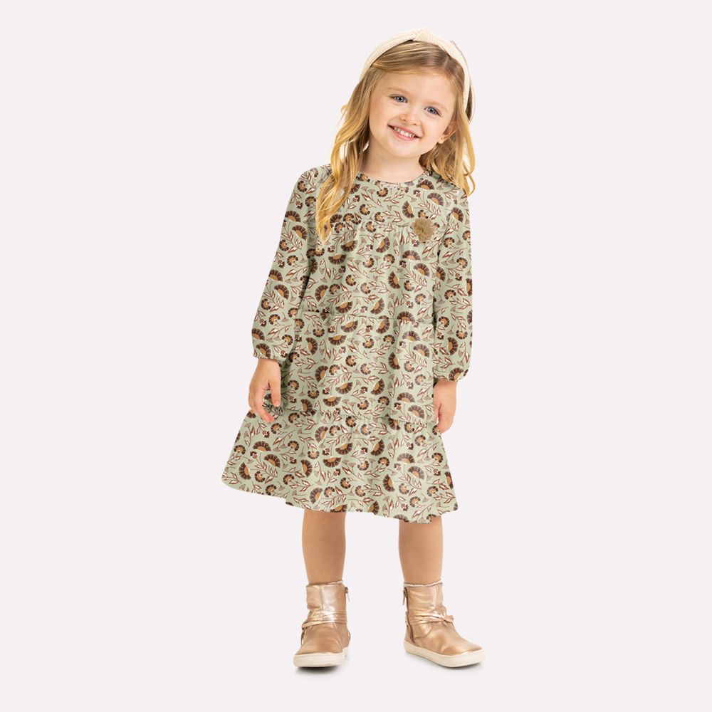 A estampa rotativa digital com estampa inspirada na natureza combina elementos florais e detalhes orgânicos em composição harmoniosa, trazendo profundidade visual e sofisticação ao vestido infantil feminino. O acabamento refinado evidencia o cuidado nos detalhes, enquanto a aplicação floral próxima ao decote acrescenta um ponto de destaque delicado e elegante. Perfeito para passeios, encontros em família e momentos especiais que pedem conforto com estilo, é uma peça que traduz a qualidade Milon em cada costura, valorizando a infância com suavidade e presença marcante.