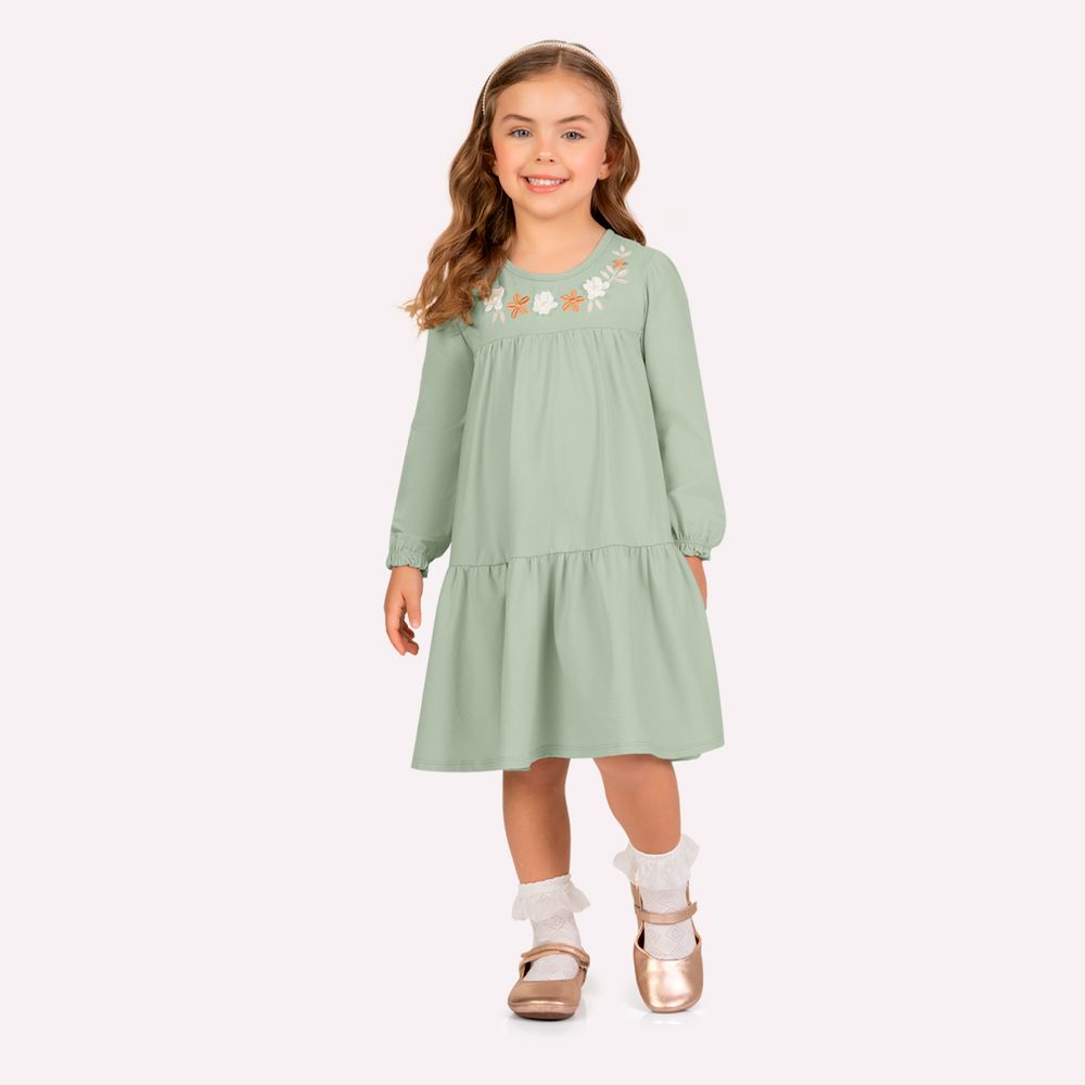 Delicado como um jardim ao amanhecer, o vestido infantil menina Milon encanta pela suavidade da cor e pela riqueza dos detalhes. Uma peça pensada para envolver a menina em conforto e elegância em ocasiões especiais e momentos casuais cheios de significado. Confeccionado em cotton 95% algodão e 5% elastano, o tecido oferece toque macio, excelente respirabilidade e elasticidade suave, garantindo ajuste confortável e liberdade de movimentos. A modelagem evasê apresenta recorte na altura do busto com leve franzido, proporcionando caimento fluido e estruturado, que valoriza o movimento natural da criança. As mangas longas levemente bufantes, com punhos delicadamente ajustados, reforçam o visual romântico e tornam a peça ideal para meia-estação, outono e celebrações de Páscoa.