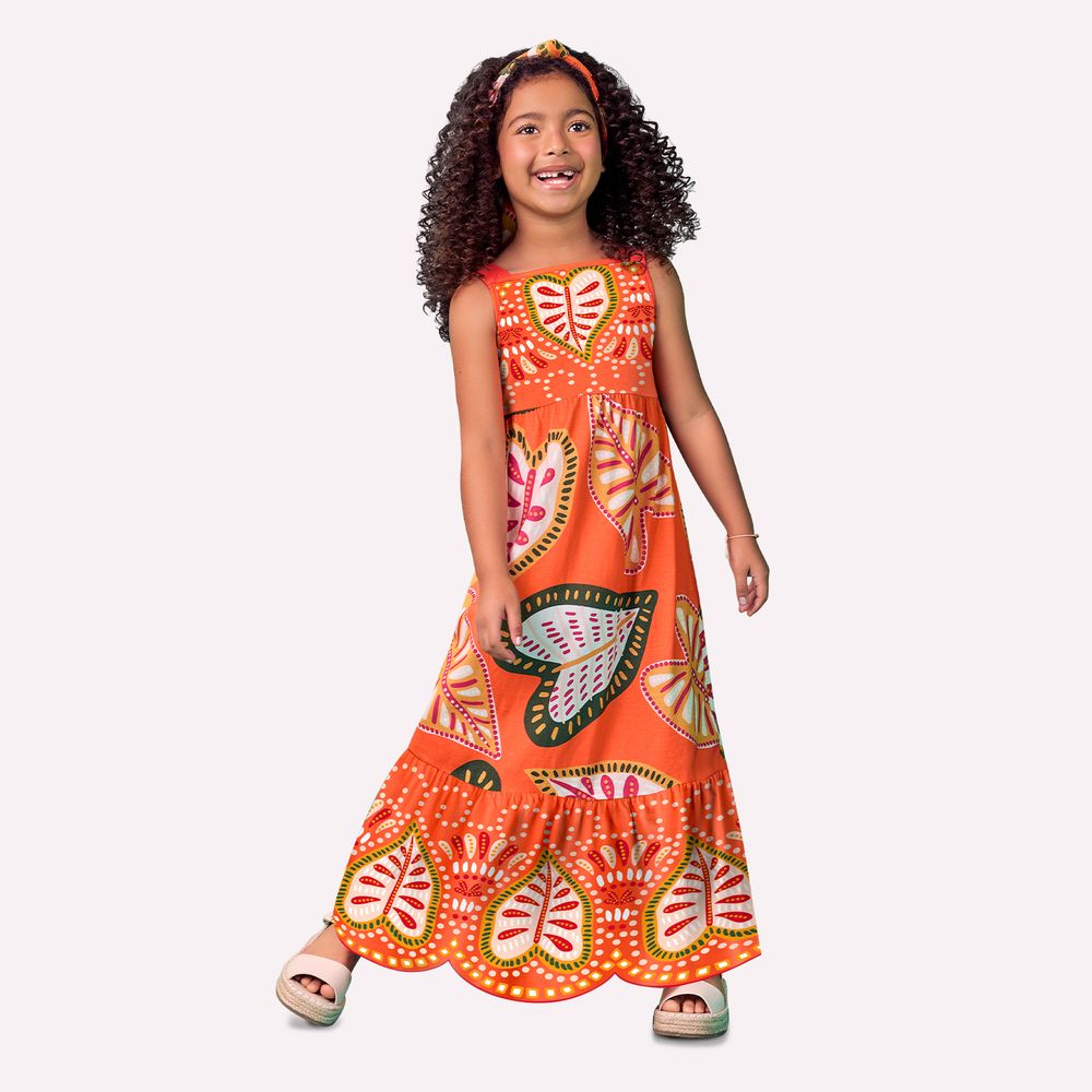 O destaque da peça está na estampa de folhagens tropicais, em tons vibrantes. Na barra, o vestido ganha ainda mais sofisticação com o acabamento em corte a laser, que proporciona um toque artesanal e elegante ao look. Ideal para ocasiões especiais ou momentos descontraídos, esse vestido é a escolha certa para meninas que gostam de se vestir com leveza e originalidade.